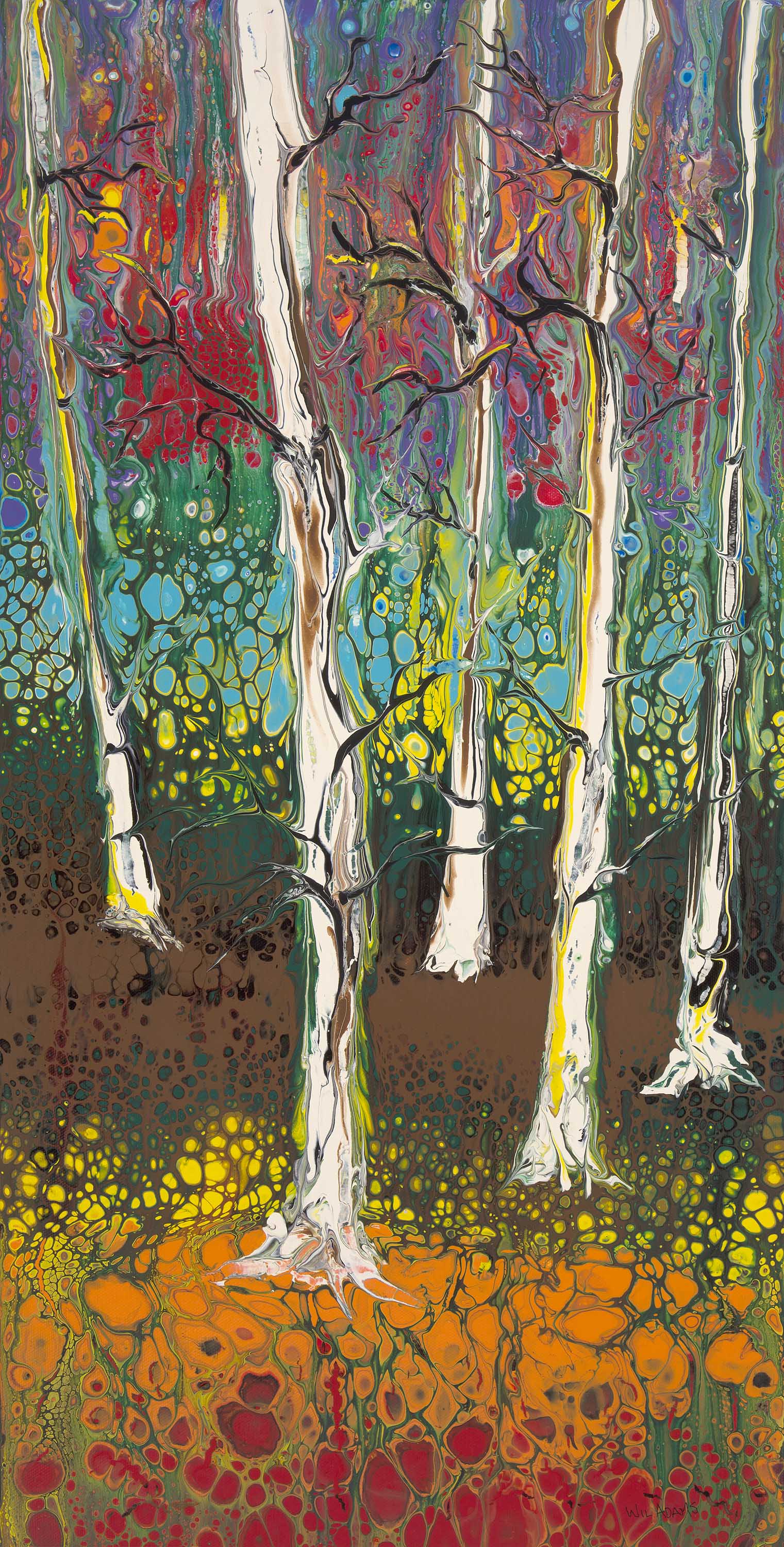 I’ve had months to get a painting ready for a local gallery show with the theme around fall or fall colors, but nothing really came to mind that fit into my art style.